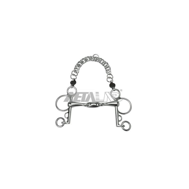Mors pelham en inox, double brisure, lien oval, canon 17mm, branches 5cm