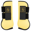 En PU, doublées néoprène. Deux velcros, double face montés sur élastique couplés à un rabat, garantissent une fermeture fiable.