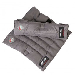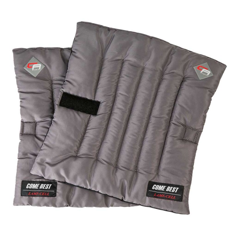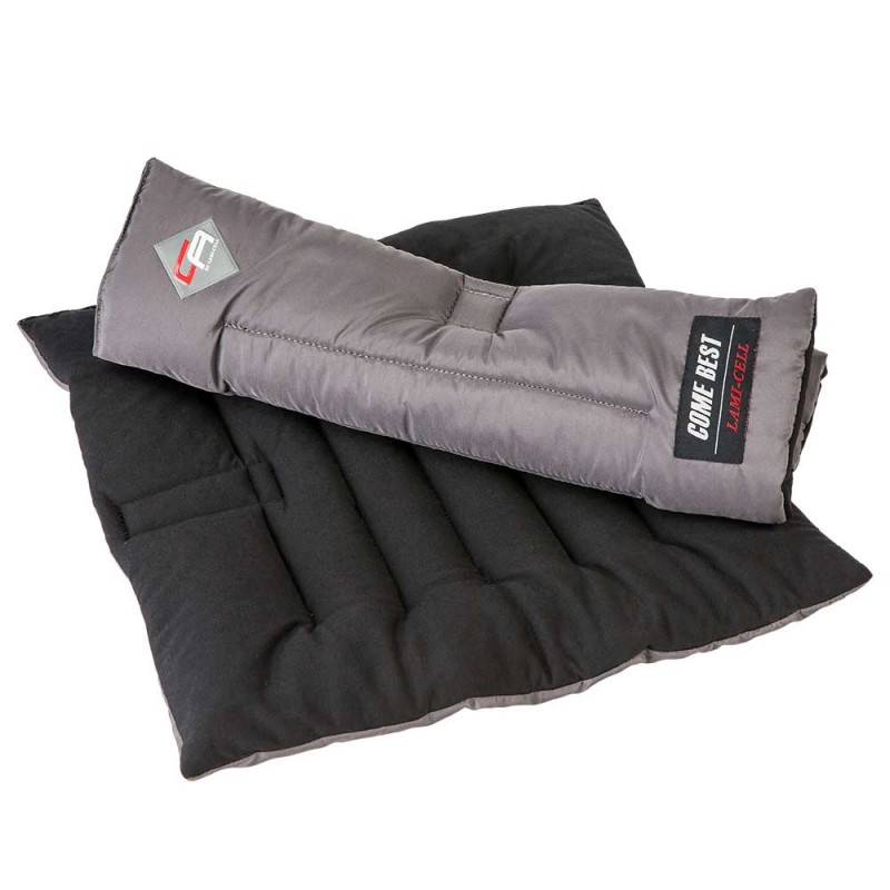Sous-Bandages utilisant le matériau innovant Come Best de Lami-Cell. Ce materiau incorpore la technologie Anion-Adding et les fibres thérapeutiques infrarouges de récupération par la chaleur. La combinaison de ces matériaux innovants 2 en 1 active la circulation sanguine et la régénération des membres du cheval. Vendus par paire.