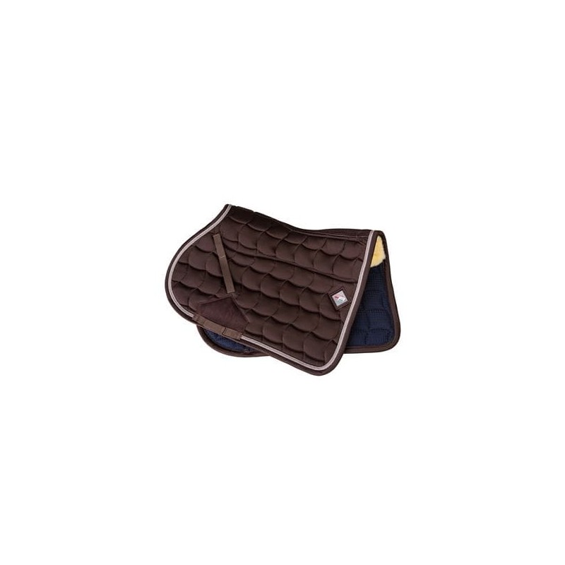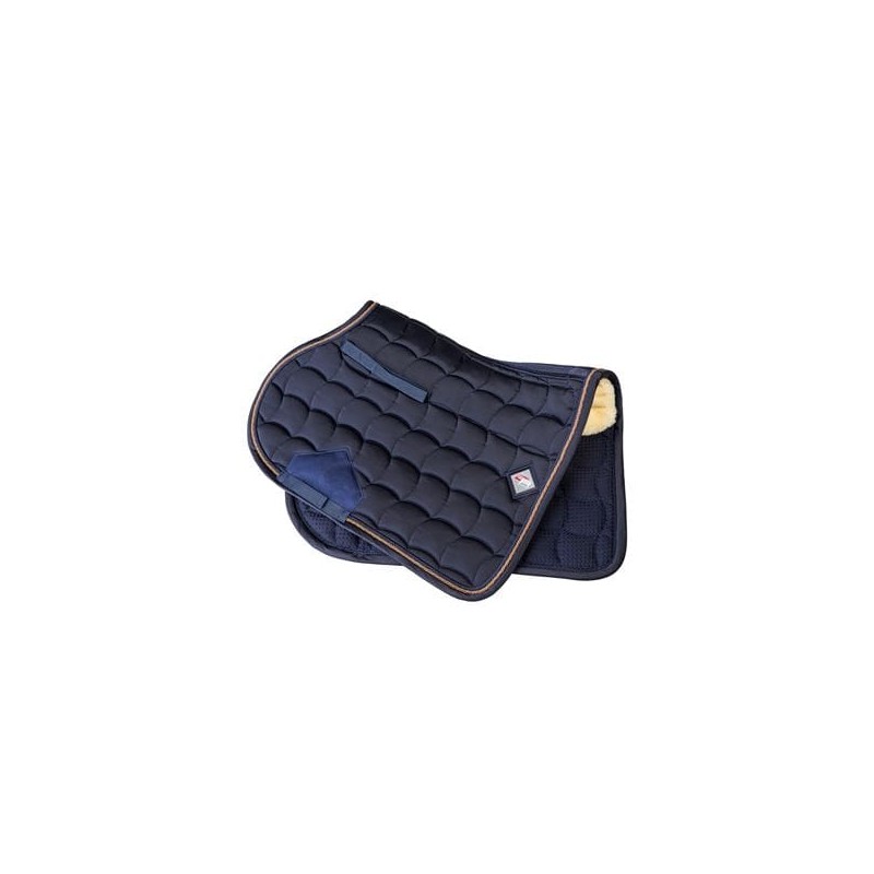 Tapis de selle CA Confort, coton de haute qualité avec quick-dry à l'intérieur, synthermax 300g et mouton synthétique. Coupe ergonomique, matériau respirant et durable. Filet d'aération le long du dos et renfort au passage de sangle évitant le frottement.
