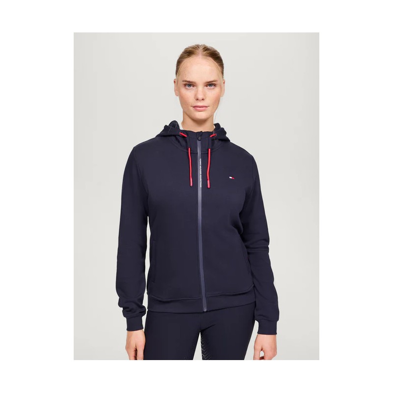 Veste à capuche sportive et performante avec fermeture éclair extensible Système de cordon Fermeture pressionnée sur les poches Bouton pression sous la capuche Un pour un usage quotidien à l'écurie ! 94% coton, 6% élasthanne