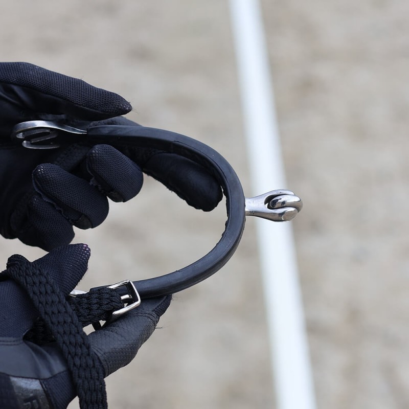 Fabriqués en acier inoxydable ASTM304 de qualité supérieure, ces éperons à molettes verticales Soft Touch METALAB garantissent durabilité et disposent d’un revêtement en caoutchouc antidérapant de haute qualité pour un ajustement sûr et une adhérence supérieure. L’œillet innovant en S permet une fixation sûre et stable des courroies d’éperons. Conformes au règlement FEI 2024, ils sont agréés pour un usage en compétition. Vendus par paire.