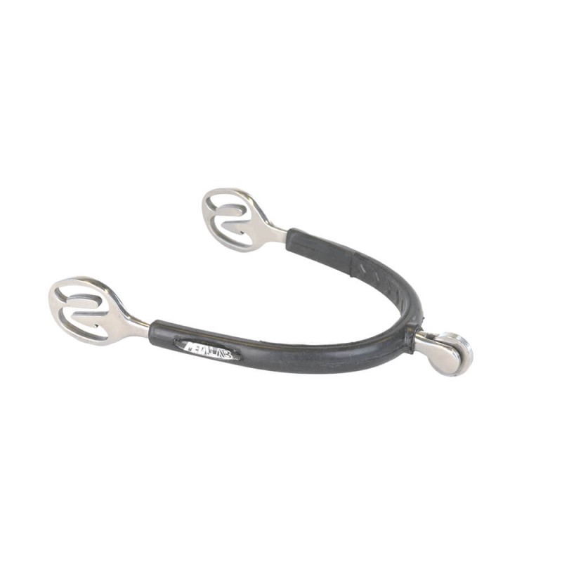 Fabriqués en acier inoxydable ASTM304 de qualité supérieure, ces éperons à molettes verticales de 3mm METALAB garantissent durabilité et disposent d’un revêtement en caoutchouc antidérapant de haute qualité pour un ajustement sûr et une adhérence supérieure. L’oillet innovant en S permet une fixation sûre et stable des courroies d’éperons. Conformes au règlement FEI 2024, ils sont agréés pour un usage en compétition. Vendus par paire.