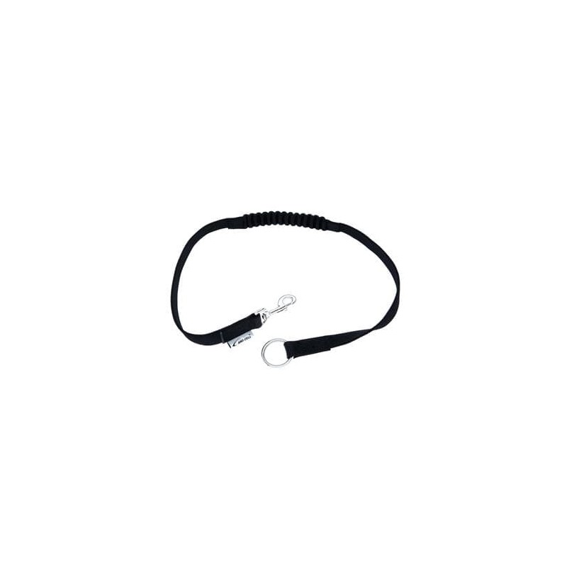 Sangle avec élastique pour attacher au licol dans la salle de pansage, ou par exemple attacher le seau d'eau au concours, le jouet de boxe, la tenture ou autre