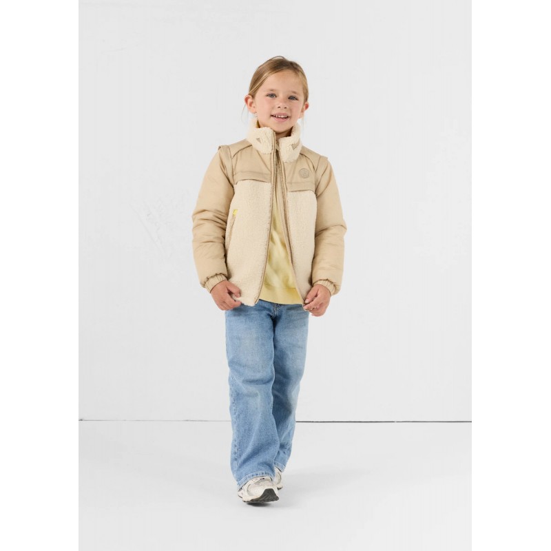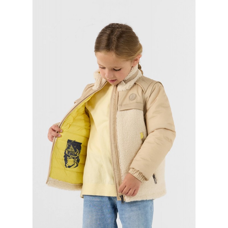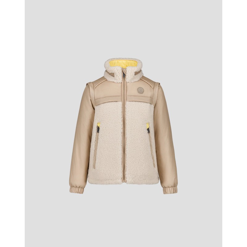 Pièce hybride alliant sherpa chaud et nylon technique. Poches zippées contrastées, col sherpa et manches amovibles pour un style modulable, pratique et performant.