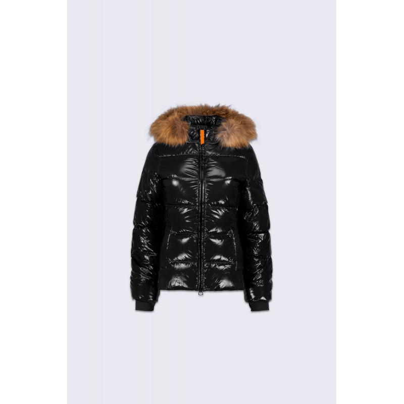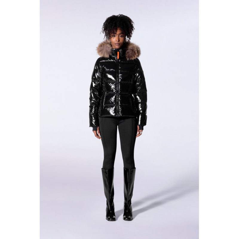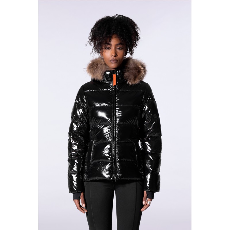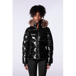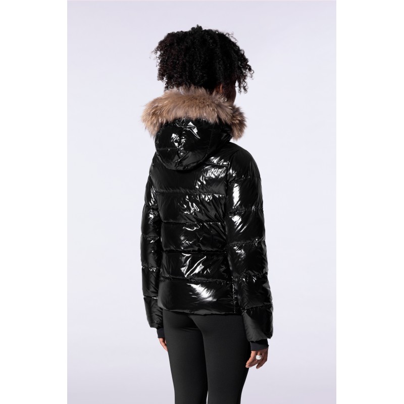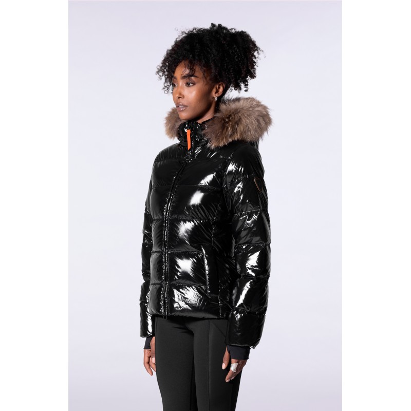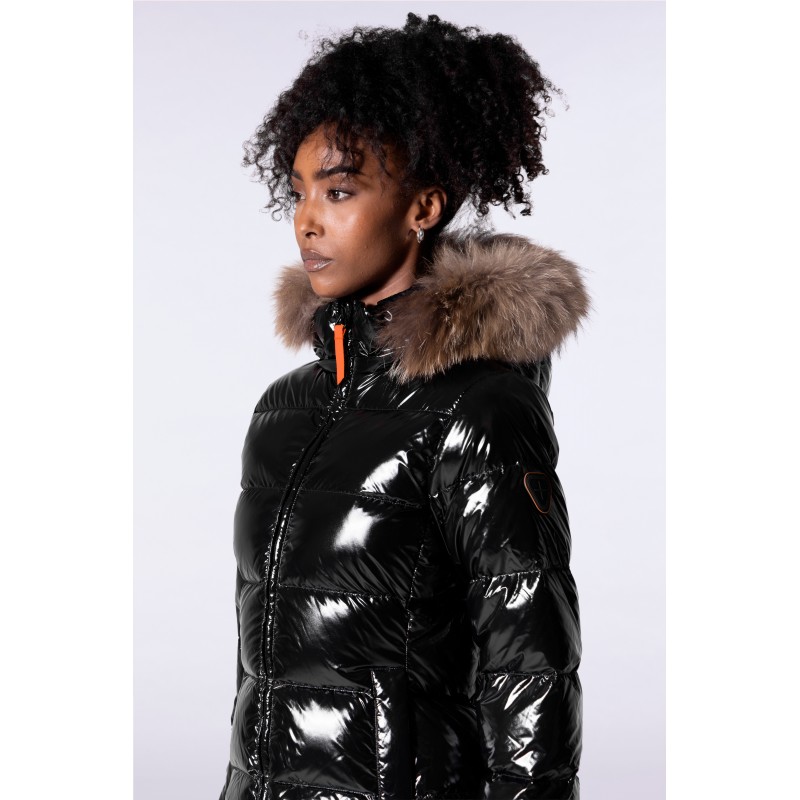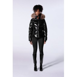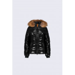 OLGA BRIGHT est une doudoune cintrée et ajustée aux épaules confectionnée en nylon. Le bas de manche est muni d’une finition ajustée avec passe-pousse. Le bas de vêtement est ajustable grâce à un cordon élastiqué. La doudoune dispose d’une capuche amovible avec fourrure véritable, amovible elle aussi. L’ouverture milieu devant se fait par un zip rehaussé d’une tirette en gros grain contrasté. Deux poches passepoilées sont insérées dans la découpe princesse. Le patch en silicone ton sur ton iconique de la marque est apposé sur l’épaule.