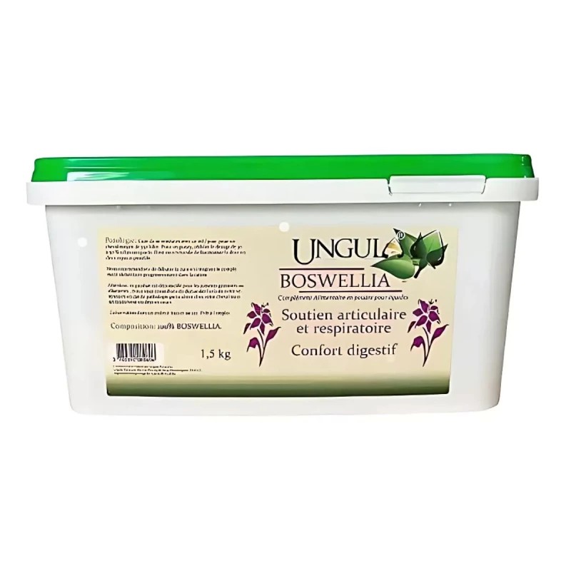 Ungula Boswellia est un complément alimentaire naturel spécialement formulé pour apporter un soutien aux articulations, au système respiratoire et à la digestion des chevaux. Grâce aux propriétés du Boswellia Serrata, il aide à limiter les inflammations et favorise un meilleur confort articulaire et musculaire.