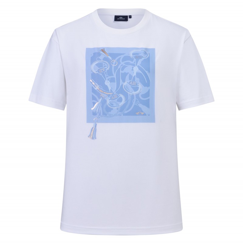 Découvre le T-shirt HVPJenny, la pièce parfaite qui allie la passion de l'équitation à l'élégance du quotidien. Conçu pour toi, la cavalière moderne qui apprécie le style sans compromis sur le confort, ce T-shirt polyvalent est un véritable essentiel. Que tu sois aux écuries, en ville ou simplement en train de te détendre, son tissu extensible bidirectionnel et sa coupe légèrement plus large t'offrent une liberté de mouvement et un bien-être inégalés. Son encolure ronde tendance et son grand motif sur la poitrine affirment ton style avec une touche d'audace, faisant de chaque instant une occasion de briller avec la sophistication décontractée que l'on attend du sport polo.