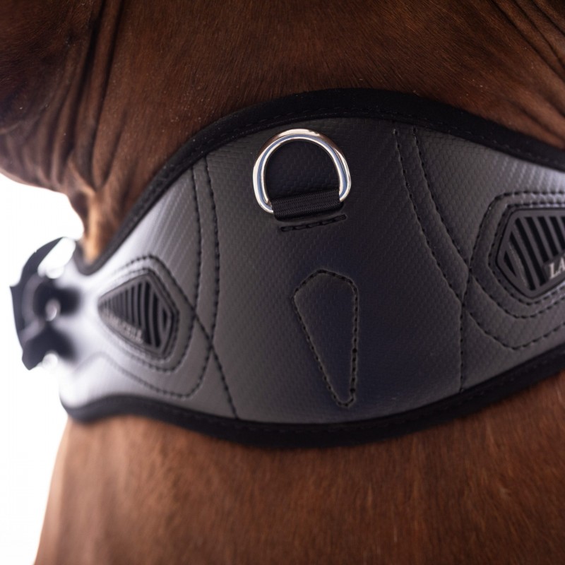 La sangle ProTec est conçue pour améliorer la circulation de l’air et assurer le confort de votre cheval tout au long de la séance. Le néoprène aéré et absorbant offre un amortissement optimal. Sa forme ergonomique épouse naturellement les contours du cheval pour un ajustement parfait. Dotée de boucles METALAB en acier inoxydable robustes, la sangle ProTec offre des performances durables et fiables.