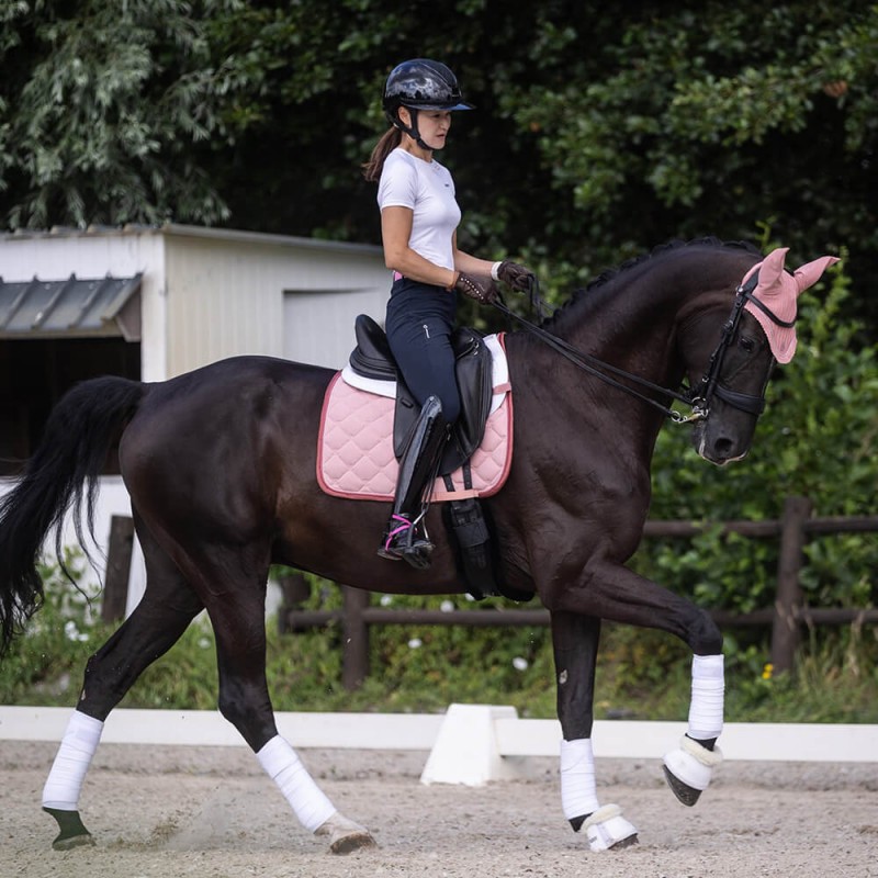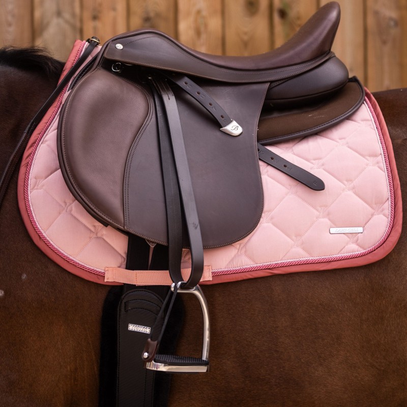 Le tapis de selle LC Vibe est fabriqué en polyester de haute qualité et doté d’un galon double . Sa surface «peau de pêche» offre un toucher doux, confortable et velouté, tout en résistant aux plis, au rétrécissement et à l’usure.