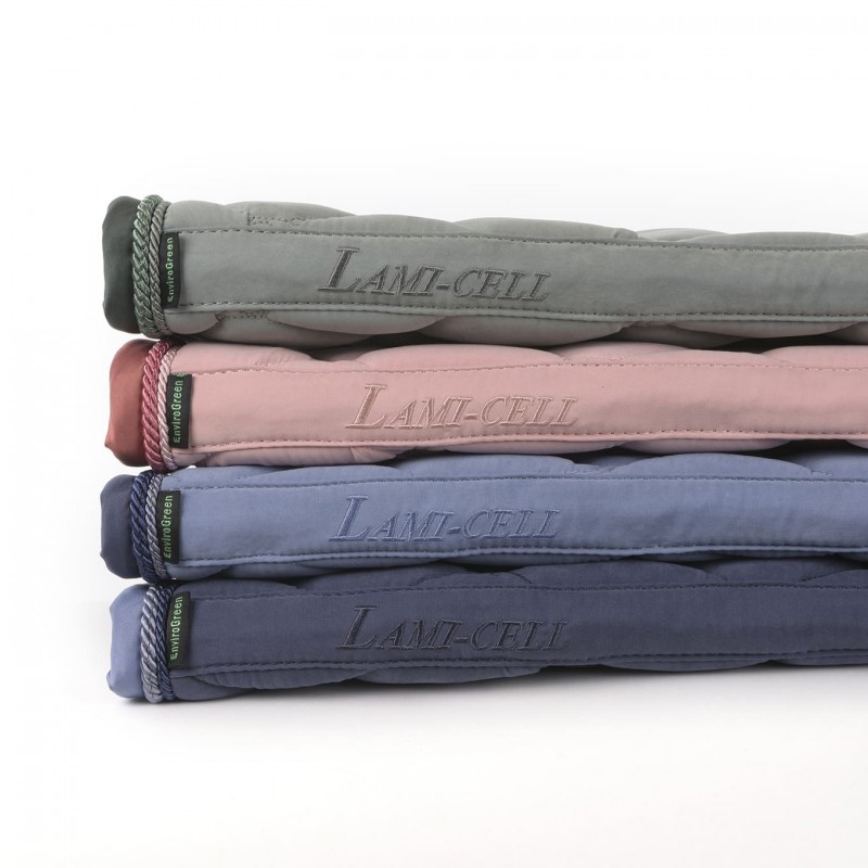 Le rembourrage en Charbon de Bambou LAMI-CELL EnviroGreen® utilise un matériau écologique fabriqué à partir de fils recyclés l’equivalent de 5 bouteilles en plastic par tapis et de textile de charbon de bambou naturel.