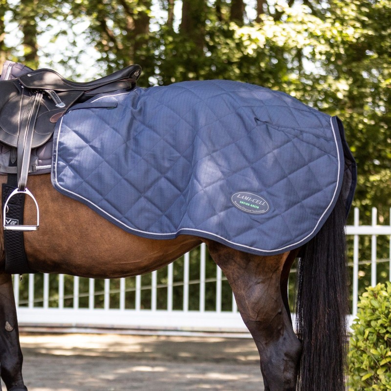 Couvre reins Bambou, 600D rip stop doux et respirant, 80g fibres synthétiques et doublure en charbon de bambou. Avec fermetures à velcro pour le fixer à la selle.