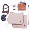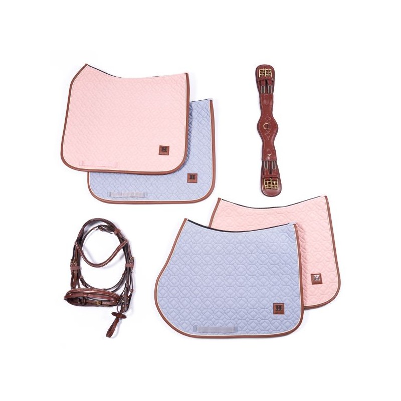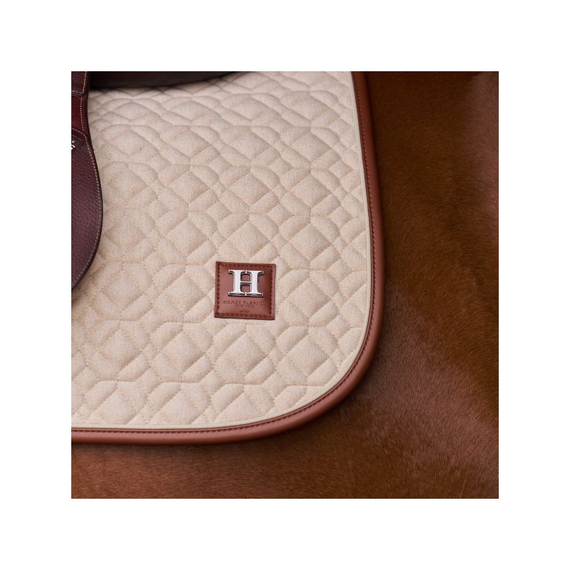 Tapis de selle chic en tissu structuré, doublure nid d'abeille et passepoil strass brillant
