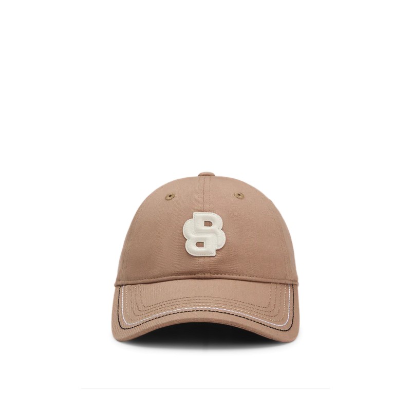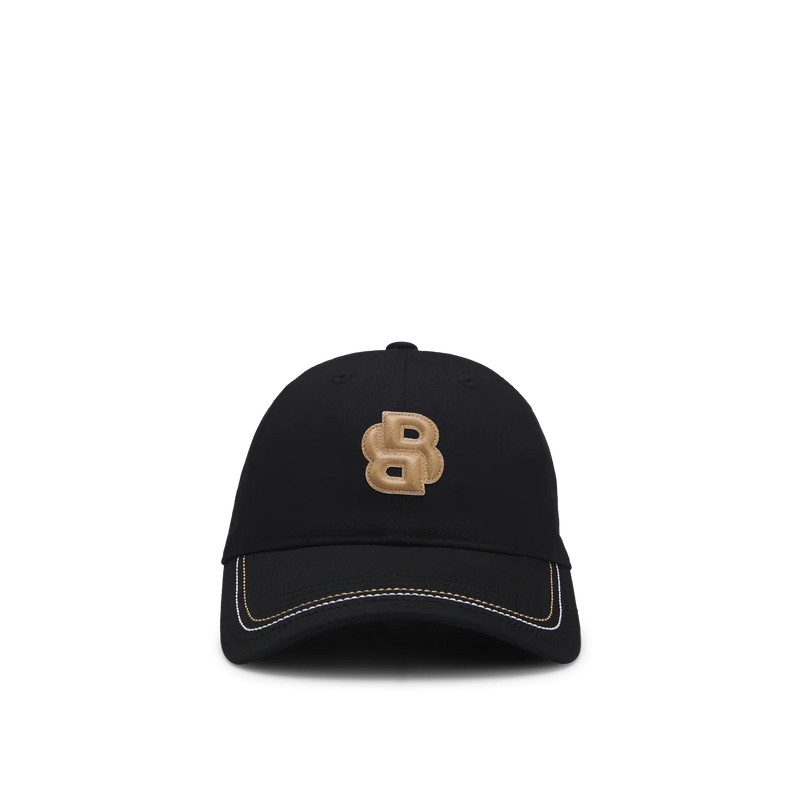 Casquette avec un patch en imitation cuir en double 'B' en couleur contrastante.
