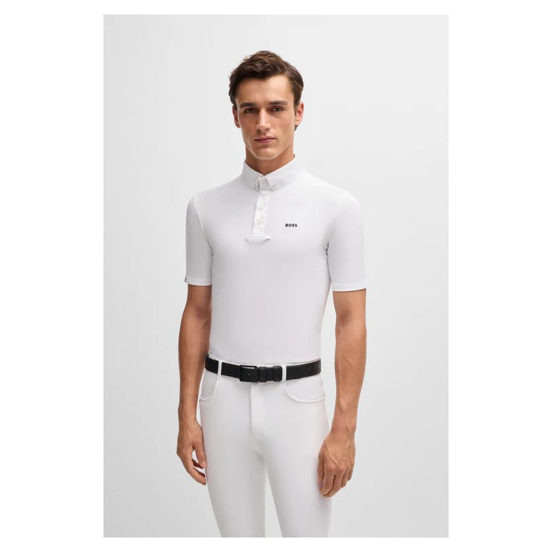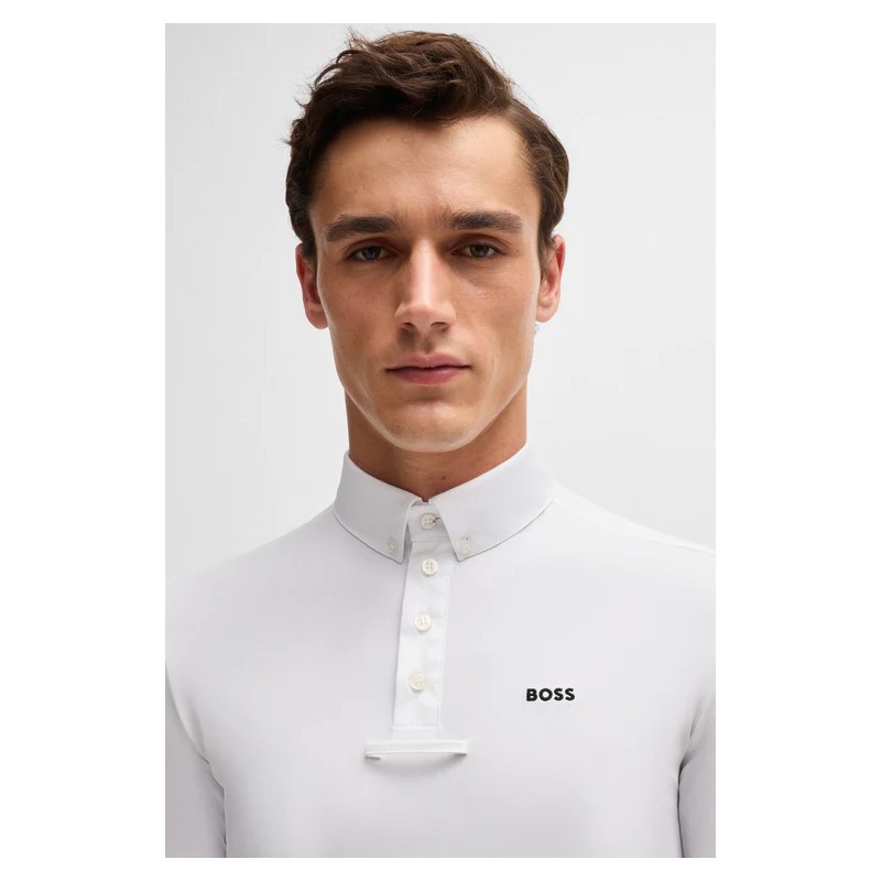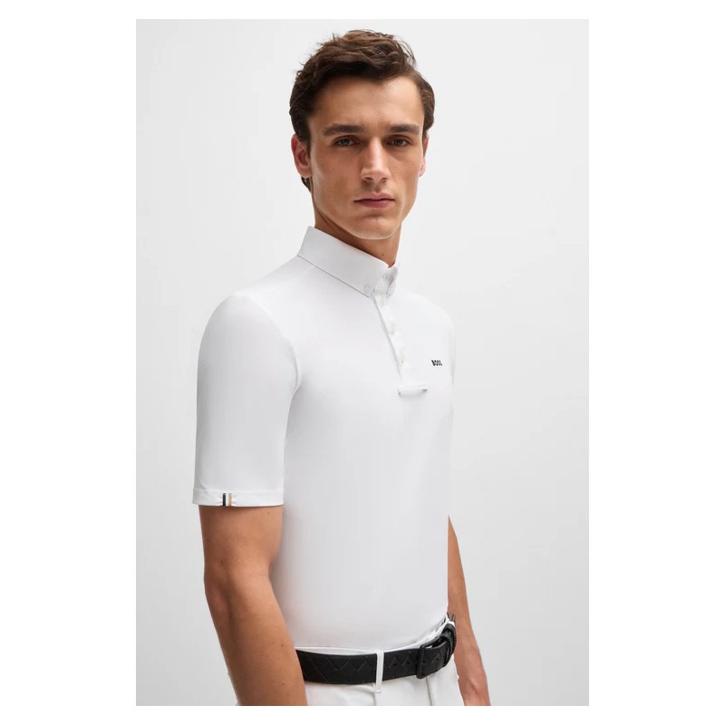 Polo de concours à mi-manches et demi-boutonnière à l’avant avec une bordure Signature Stripe. Sur la poitrine, il y a un logo BOSS brodé.