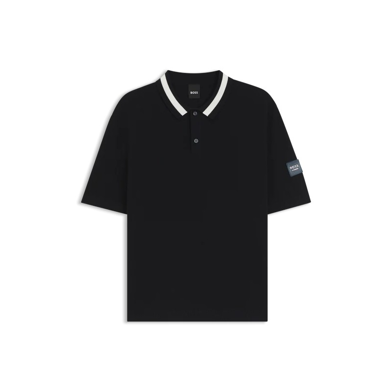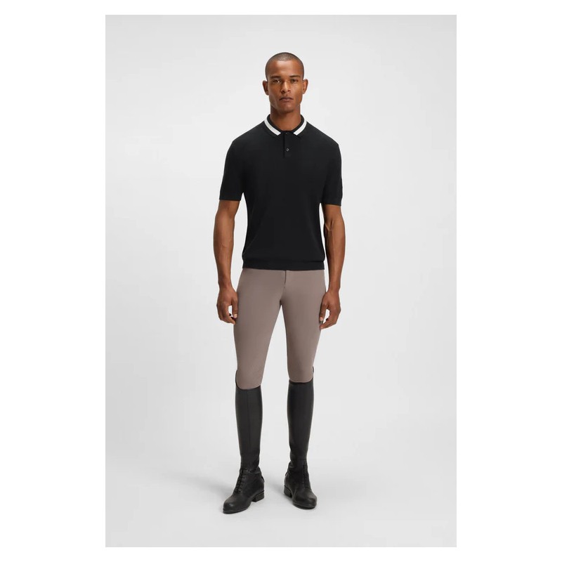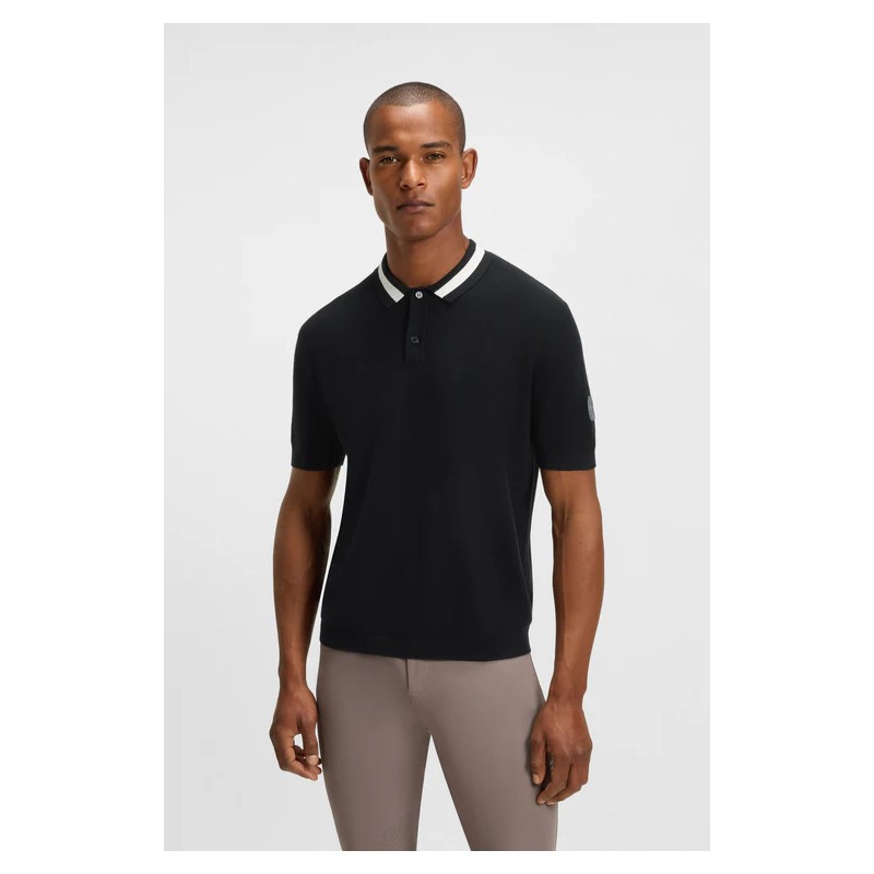 Polo tricoté à manches demi-estivales en style grain de riz avec des rayures contrastantes sur le col polo. Plaque à boutons avec 2 boutons et logo BOSS Equestrian sur la manche gauche. 100 % CO