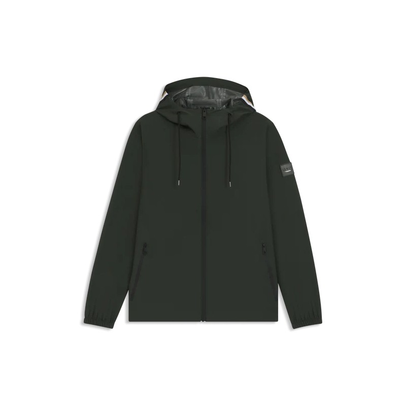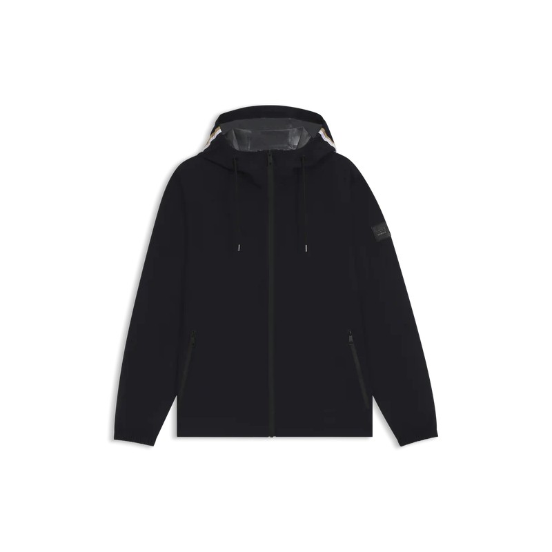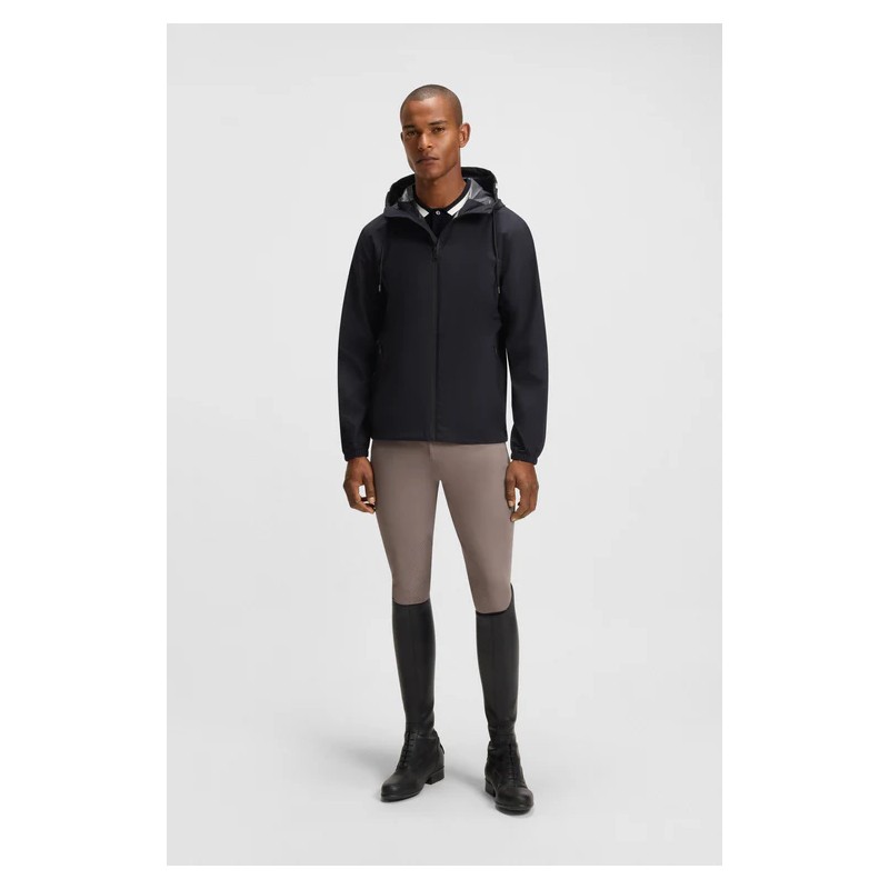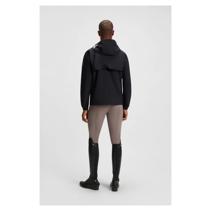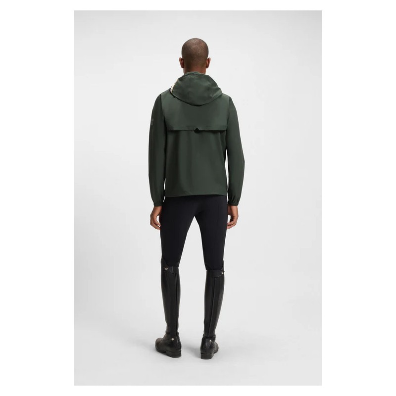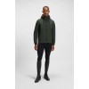 Veste imperméable, étanche, très élastique et respirante, avec un ruban adhésif signature autour de la capuche. Le capuche est réglable.