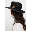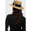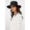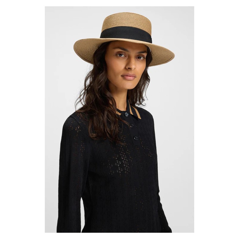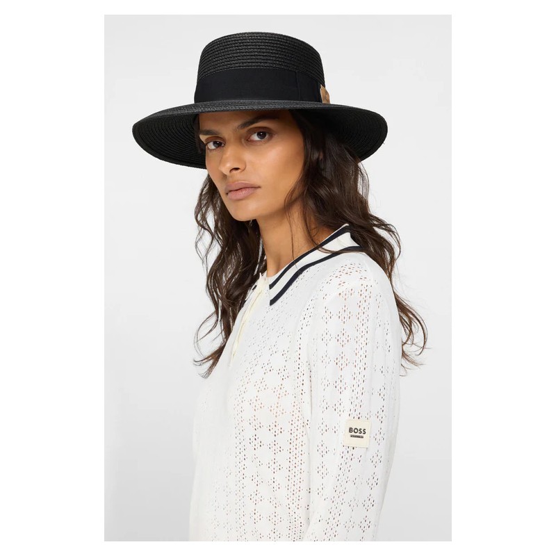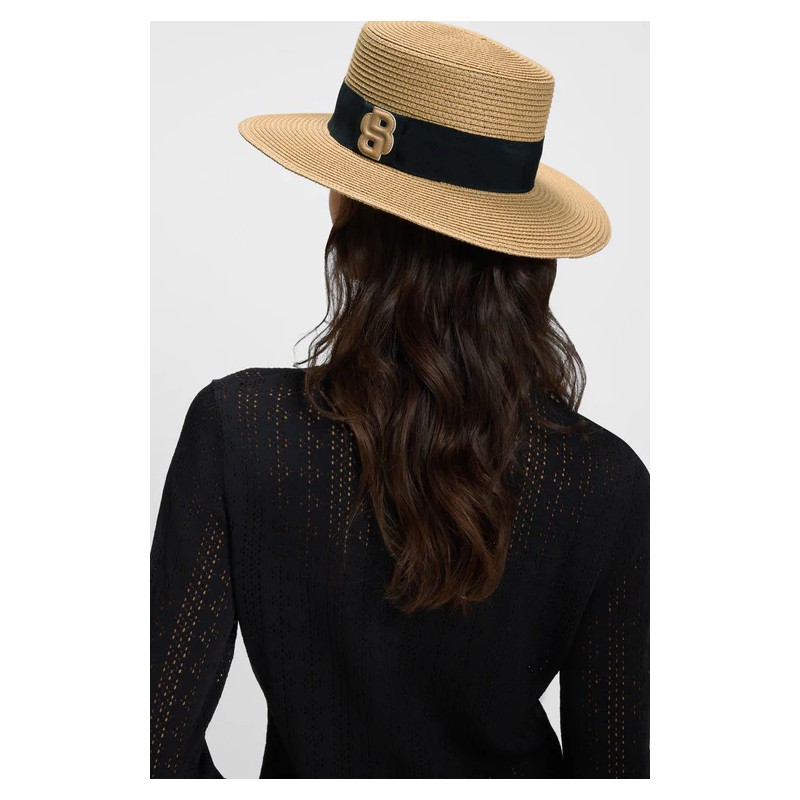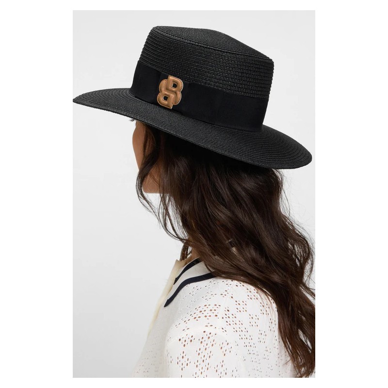 Chapeau de style bateau avec ruban et écusson double-B en faux cuir contrastant.