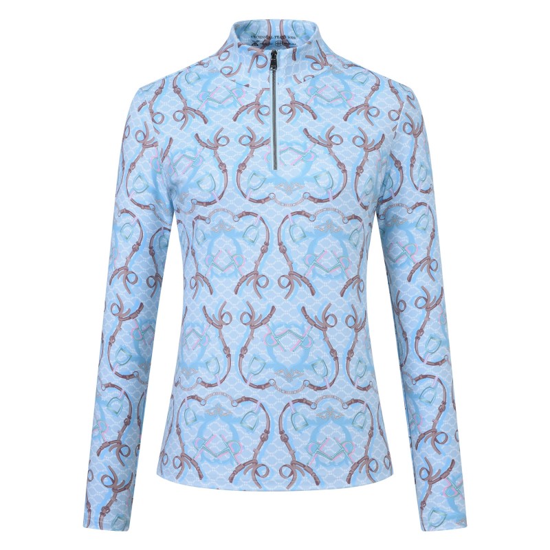 Ce t-shirt technique à manches longues, véritable ode à l'élégance équestre, allie la fonctionnalité indispensable à la pratique de l'équitation avec un design résolument moderne. Confectionné dans un tissu stretch innovant, il épouse parfaitement tes mouvements grâce à son extensibilité dans 4 directions, offrant une liberté inégalée que tu sois en dressage, à l'obstacle ou simplement aux écuries. Sa matière respirante assure une régulation optimale de ta température corporelle, te gardant au frais et à l'aise, quelle que soit l'intensité de ta séance. Avec son imprimé all-over tendance et son petit col montant zippé sur le devant, il te garantit une allure féminine et sophistiquée, signature de l'esprit polo que nous aimons tant.