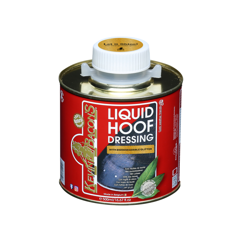Huile protectrice et nourrissante pour les sabots des chevaux ferrés ou non. Sa formule contient des paillettes biodégradables pour un fini pailleté et élégant. Protège contre l’humidité, favorise l’élasticité, active la repousse et améliore la qualité de la corne. Disponible en deux couleurs : PINK - GOLD Mode d’emploi Appliquez le produit au pinceau directement sur le bourrelet périoplique, l’extérieur du pied, la sole et la fourchette.
