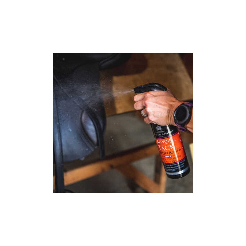 Tack Conditioner, Etape 2 : Appliquez une crème en spray revitalisante afin de protéger le cuir et le rendre brillant.