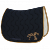 Tapis à la matelassure épaisse dessinée en vague et dont la découpe permet un bon dégarrotage. Doublure en nid d'abeille blanche pour le confort de votre cheval. Tous les coloris sont dotés d'un galon Point Sellier emblématique de la marque Pénélope Leprevost. Deux passants en nylon pour la sangle. Broderie assortie à chaque coloris du tapis