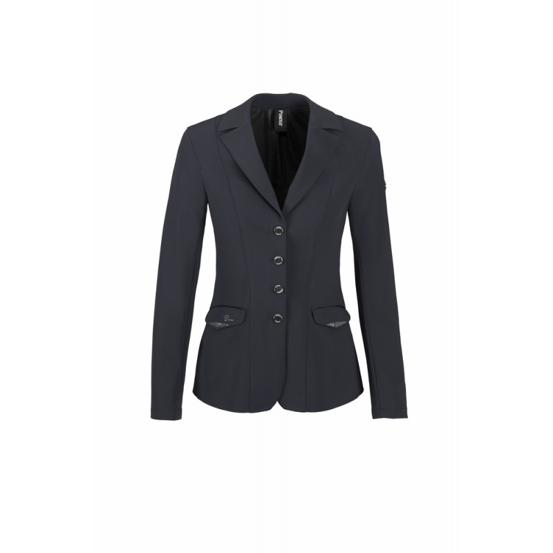 La veste de compétition Pikeur Isalie a un beau design, parfait pour tout les cavalières élégantes. Elle a été soigneusement conçue à partir d'un tissu bi-élastique et respirant, qui donne une coupe flatteuse tout en permettant une grande liberté de mouvement. Les manches sont de coupe slim pour conserver une apparence élégante. Orné de strass unis et de passepoils en satin sur les rabats des poches, le col et le dos, l'Isalie respire la qualité et la classe et ferait la paire parfaite avec la culotte de compétition Pikeur Laure.