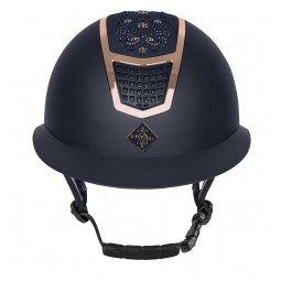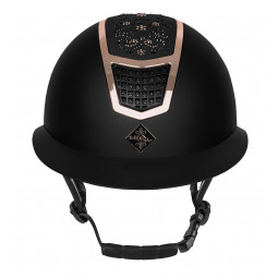Casque Fair-Play Qauntium Chic à visière large, avec décor strass sur le bandeau - Très confortable également grâce à la doublure en mousse à mémoire de forme - Molette de réglage - Système de régulation 3 points - Système de ventilation efficace (trous d'aération à l'avant et à l'arrière) - Doublure amovible et lavable - Visière flexible - Fabriqué dans un matériau absorbant les chocs et les chocs avec des capacités de protection encore accrues grâce à l'utilisation de demi-boules brevetées absorbant les chocs dans la coque EPS - Les nervures de renforcement protègent contre la pression de la déformation latérale - Conforme à: VG1 01.040 2014-12 - Poids (20g): S-460g, M-520g, L-560g