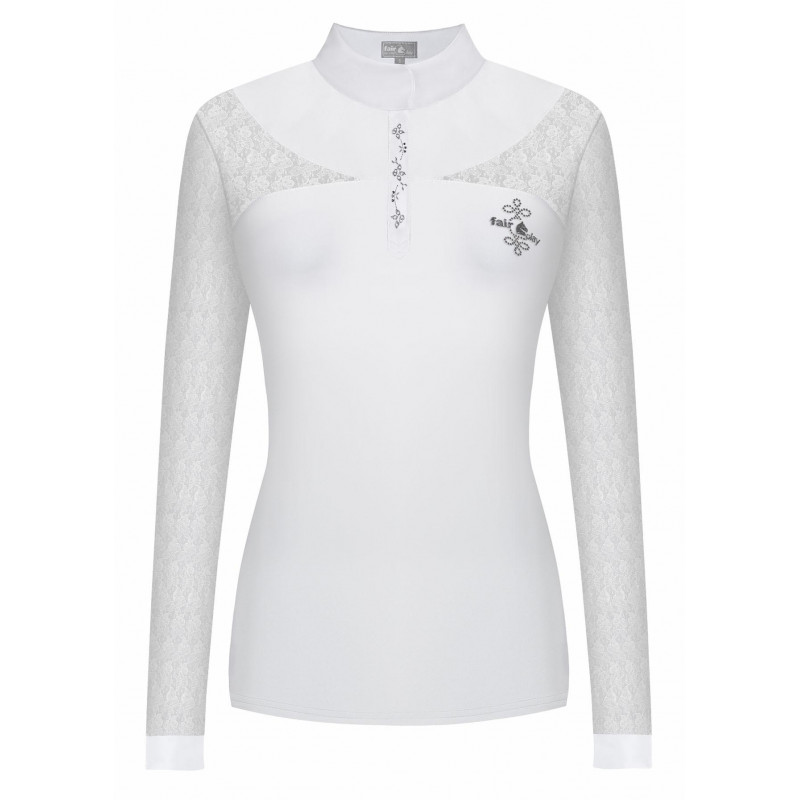 • Polo de compétition chic et très féminin • Fabriqué en tissu technique recyclé élastique, respirant et évacuant l'humidité avec protection UV • Fermeture à l'avant par boutons-pression dissimulés • Empiècements en dentelle élastique pour une meilleure circulation de l'air • Broderie accrocheuse avec des cristaux le long du pli avant • Décoré d'un logo Fair-Play brodé avec des cristaux
